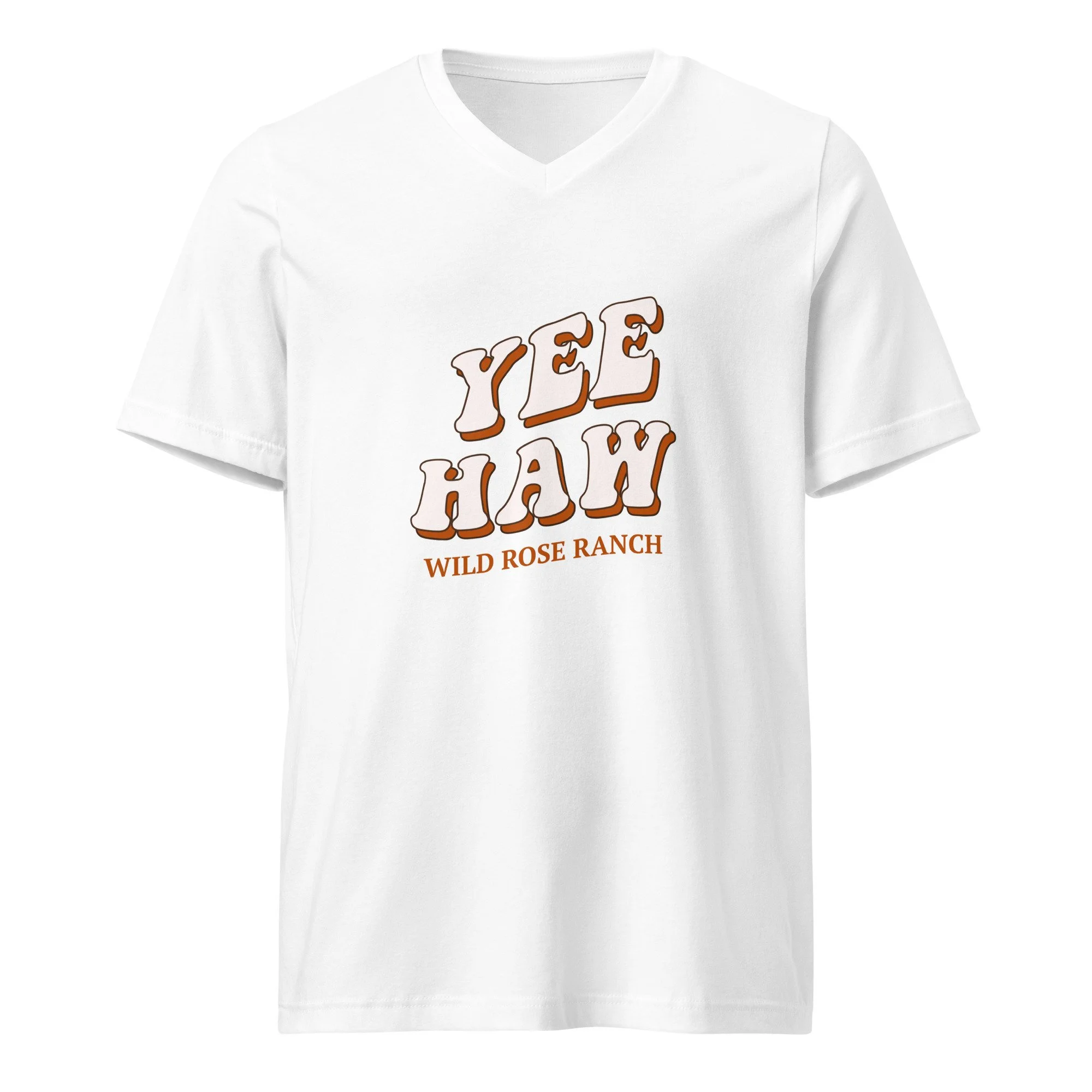 Store › Yee Haw! V Neck T-Shirt Image 1 of 4 Image 2 of 4 Image 3 of 4 Image 4 of 4 Yee Haw! V Neck T-Shirt from $22.50 This unisex tee has a classic v-neck cut and fits like a well-loved favorite. • 100% combed ring-spun cotton • Dark Grey Heather is 52% Airlume combed ring-spun cotton, 48% polyester • Athletic Heather is 90% combed and ring-spun cotton, 10% polyester • Pre-shrunk fabric • Fabric weight: 4.2 oz/yd² (142 g/m²) • Regular fit • Side-seamed construction • Coverstitched v-neck and hemmed sleeves • Shoulder-to-shoulder taping • Blank product sourced from Nicaragua, Guatemala, or the US Size: Select Size S M L XL 2XL Add To Cart Added! This unisex tee has a classic v-neck cut and fits like a well-loved favorite. • 100% combed ring-spun cotton • Dark Grey Heather is 52% Airlume combed ring-spun cotton, 48% polyester • Athletic Heather is 90% combed and ring-spun cotton, 10% polyester • Pre-shrunk fabric • Fabric weight: 4.2 oz/yd² (142 g/m²) • Regular fit • Side-seamed construction • Coverstitched v-neck and hemmed sleeves • Shoulder-to-shoulder taping • Blank product sourced from Nicaragua, Guatemala, or the US